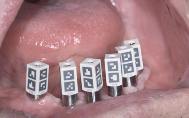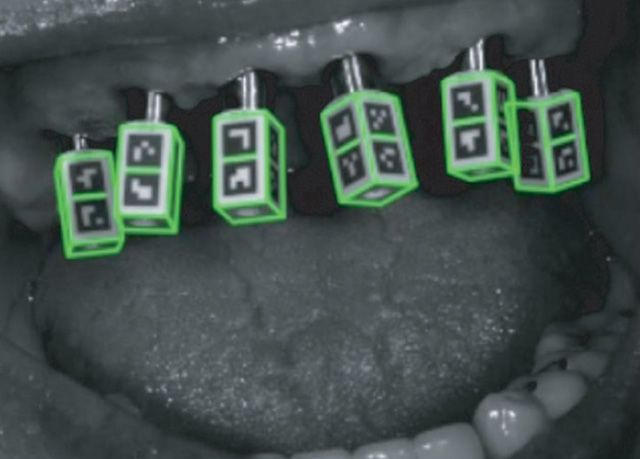 Pozycje implantów są rejestrowane w trójetapowym procesie pozaustnym, z bezproblemową integracją z systemami CAD, takimi jak exocad.